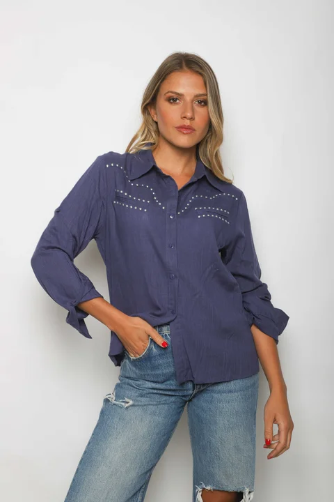 Camisa Premium de Lino con Tachas.