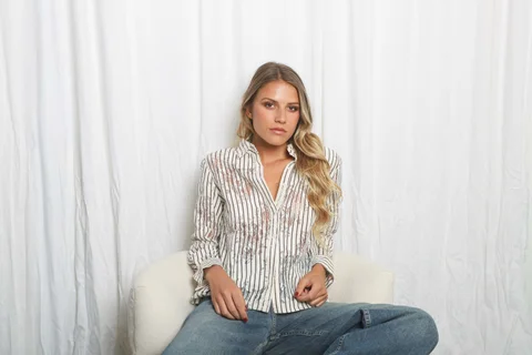 Camisa Premium Rayada con Encaje.