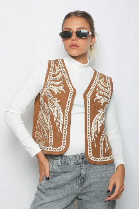 Chaleco Premium Forrado y Bordado con Piedras y Canutillos.