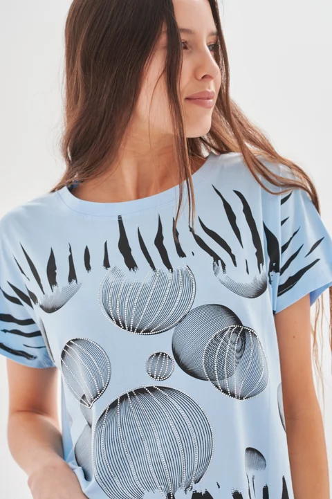 Remeron Premium de algodon Lycra Estampado con Brillos.