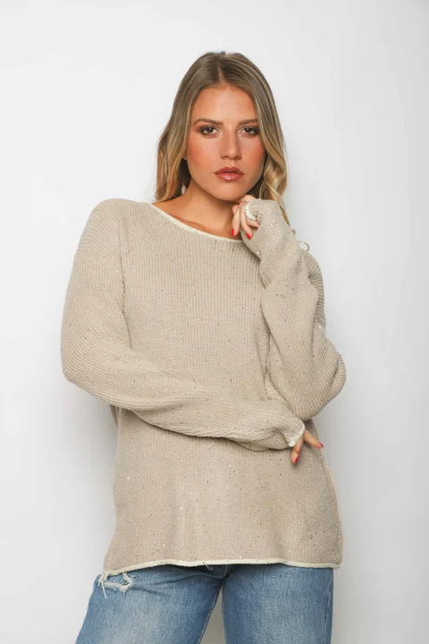 Sweater Premium Tejido con Lurex con Guarda combinada y Lentejuelas.
